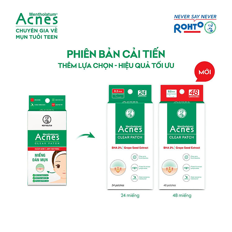 Miếng dán mụn giúp giảm mụn sưng viêm Acnes Clear Patch (24 Miếng)