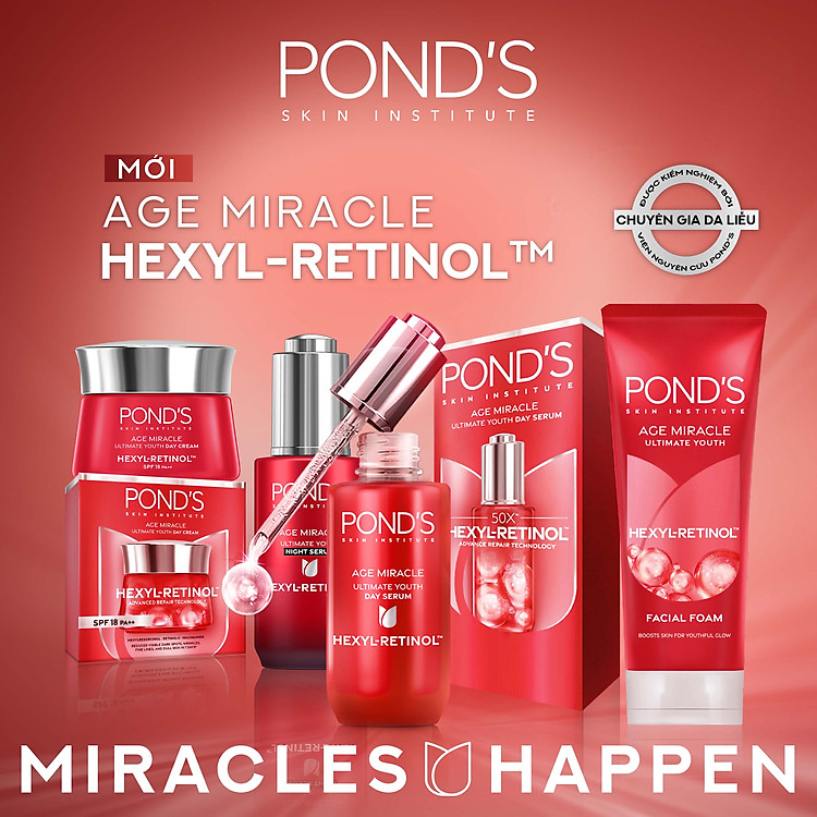 Pond’s Age Miracle Ultimate Youth Hexyl-Retinol TM – MỜ ĐỐM NÂU VÀ NẾP NHĂN VỚI 50X HEXYL-RETINOL1. Vì sao bạn sẽ thích:Tinh chất serum ngăn ngừa dấu hiệu lão hoá ban đêm Pond’s Age Miracle Ultimate…
