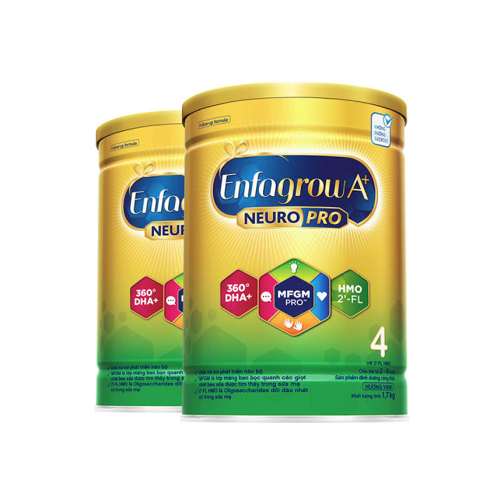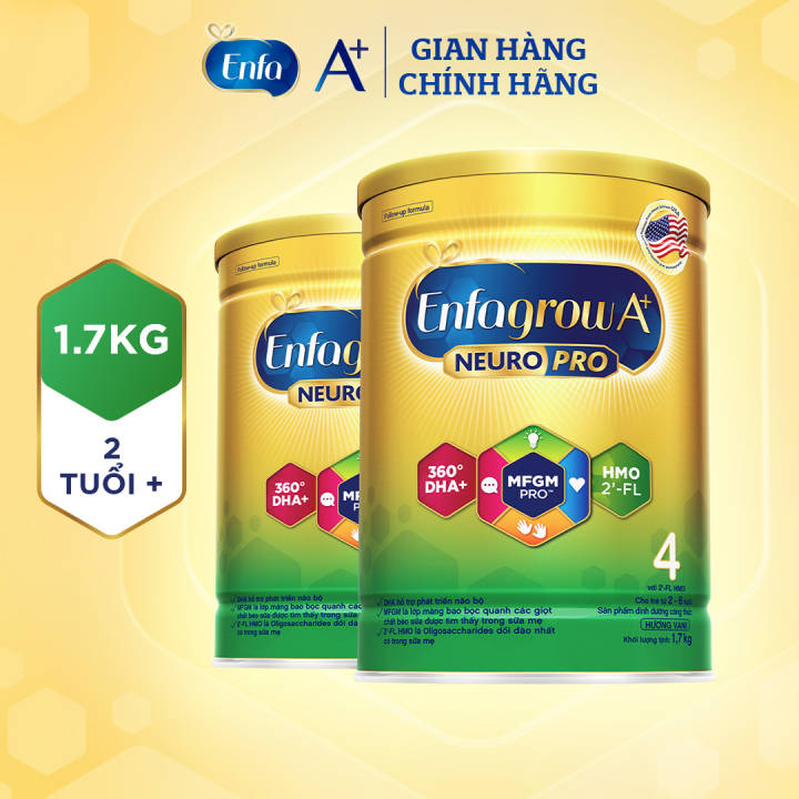 Bộ 2 lon Sữa bột Enfagrow A+ Neuropro 4 1.7kg/lon, vị nhạt dễ uống phù hợp cho trẻ 3-4 tuổi. Sữa bột Enfa HMO giúp phát triển não bộ, bổ sung chất dinh dưỡng cần thiết cho sự phát triển toàn diện của trẻ. – Lazada